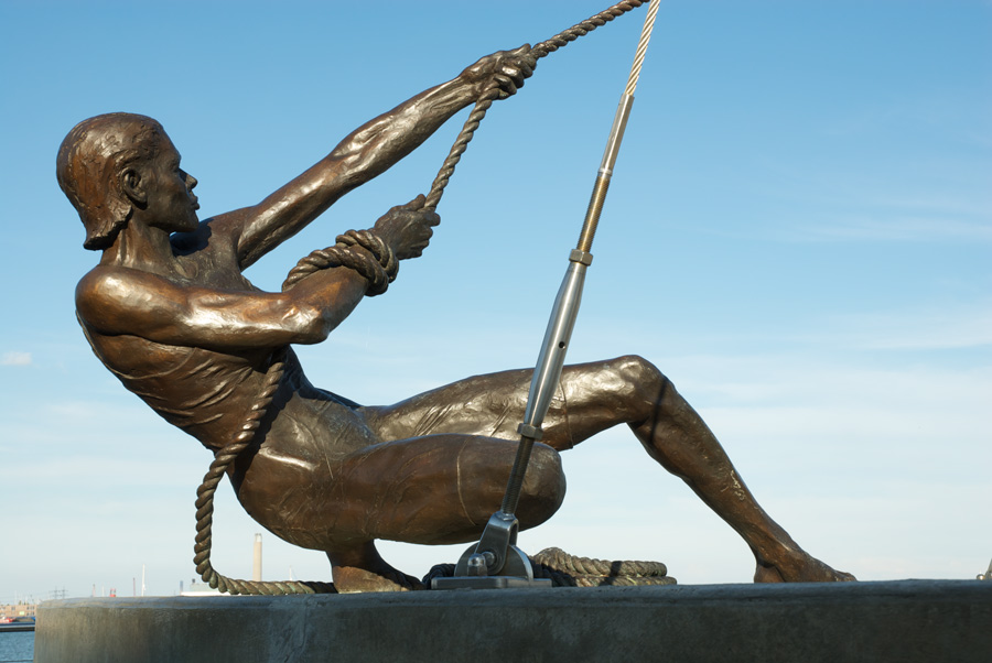 35ft high stainless steel sails turn on a single mast with a 'Jack Tar' bronze figure juxtaposed against a sleek bronze female sailor. The six figure cost of the project was funded entirely by local people and businesses and Sam was instrumental in setting up the Medway Sculpture Trust with local businessmen and Medway MP Bob Marshall-Andrews QC.